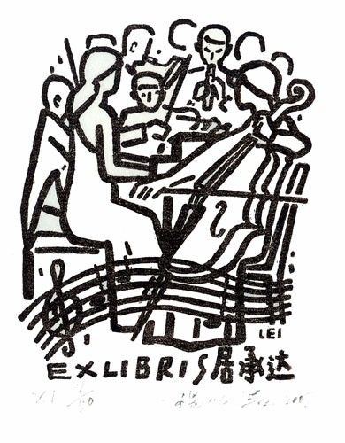 杨以磊先生1984年就开始创作藏书票,是国内非常具有特色的藏书票艺术家,擅长木刻,麻胶版,童趣性强烈。